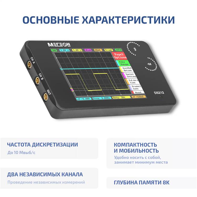 Представляем карманный цифровой осциллограф МЕГЕОН DS212 - компактное и удобное устройство, идеально подходящее как для профессионалов, так и для начинающий специалистов. Этот осциллограф сочетает в себе передовые технологии и простоту использования, что делает его отличным инструментом для анализа в различных областях.